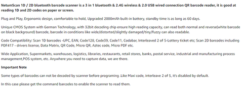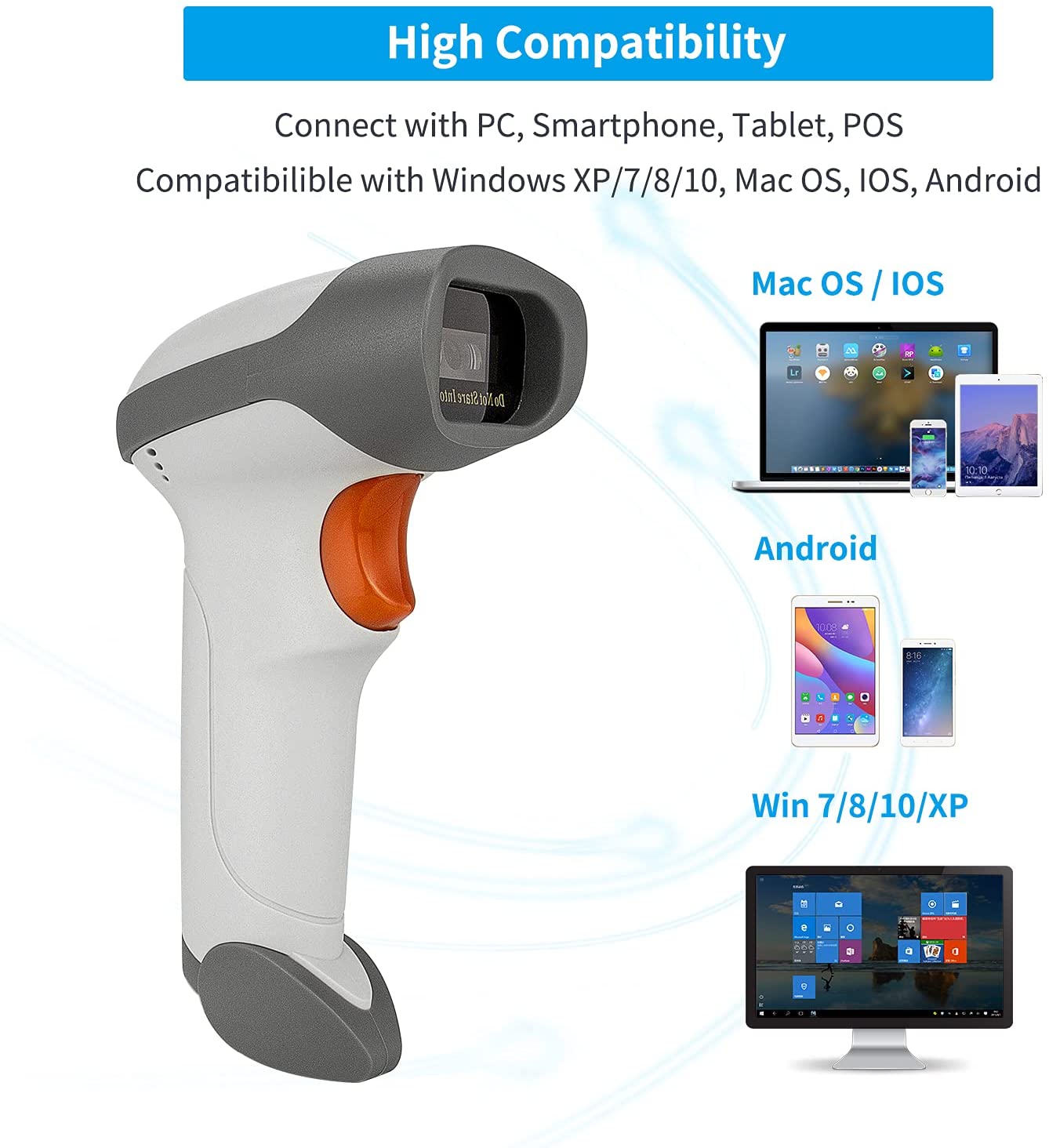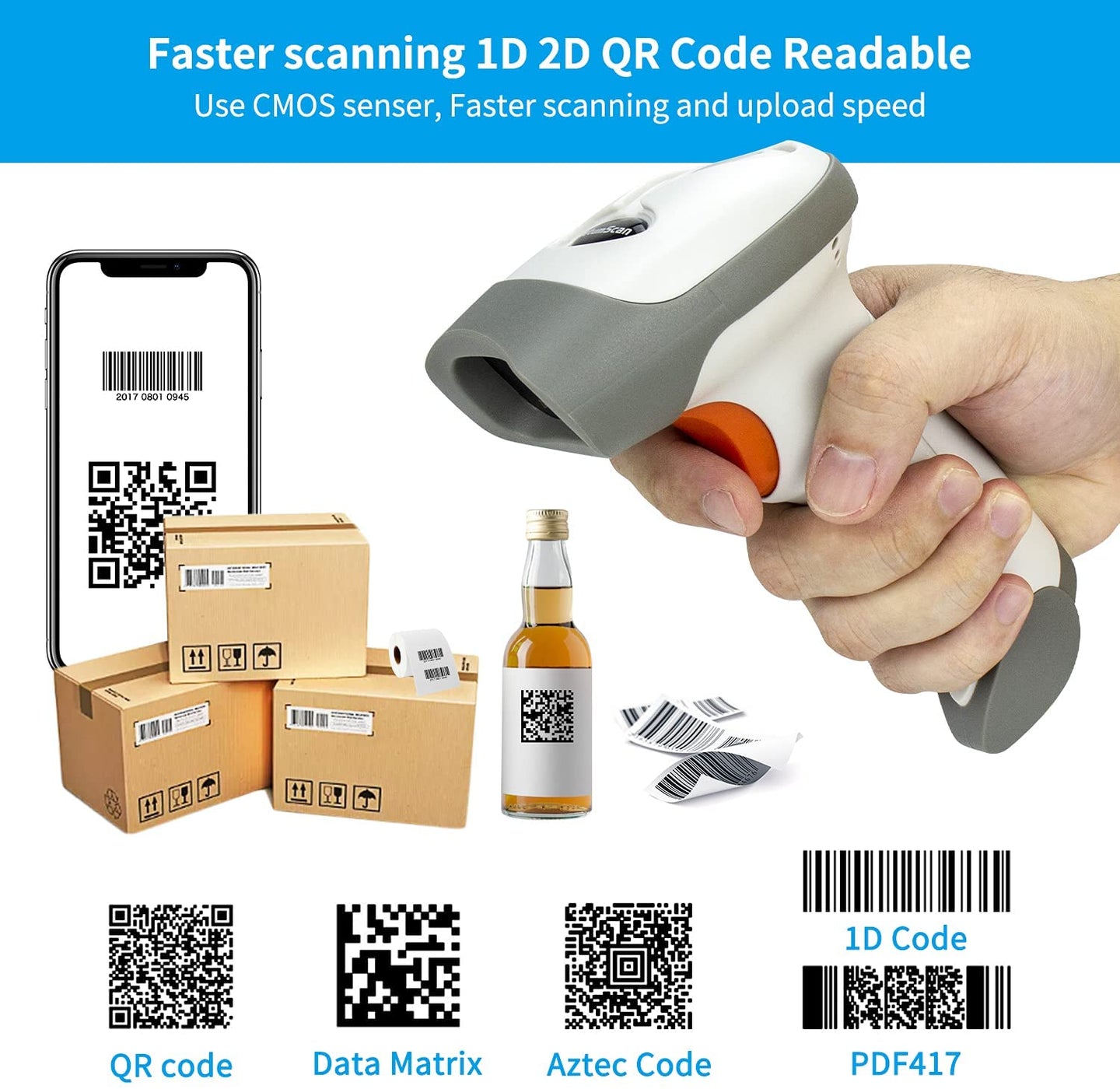 - ➤High-sensitive CMOS Sensor - Fast accurate reading speed, 32Bit CPU super decoding ability that the speed can up to 350/sec, equiped with upgraded CMOS sensor, which can easily capture 1D/ 2D(QR/ PDF417/ Data Matrix,etc) bar codes from paper and screen, that can read even deformed barcodes, i.e. smudged, damaged, fuzzy, reflective barcodes, etc.