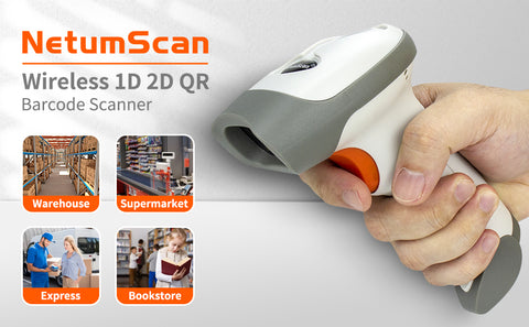 - ➤3-in-1 Wireless+Wired Connection & 2000mAh Battery - NetumScan scanner can work via 2.4Ghz wireless + USB 2.0 wired. It is compatible with Bluetooth as well. Large 2000mAh built-in battery, standby time is as long as 60 days, which allow you to scan bar code in every corner of your library and warehouse. Also, it can scan barcodes with a USB cable which will charge the scanner gun at the same time. Don't need driver.