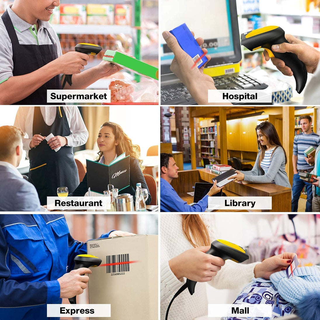 - 3-in-1 Bluetooth1D Scanner - You can according to your needs to switch between 2.4G wireless & Bluetooth & USB wired three types of connection mode more convenient, easily connected with your laptop and phone. Especially for book store, online store, sales shop, warehouse, etc place.