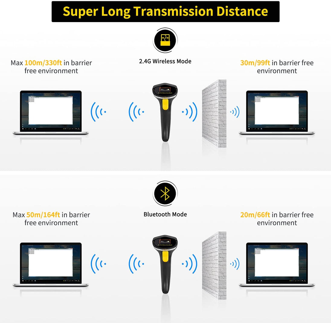- Auto Scanning & Storage Mode - Manual Scan & Auto-sensing Scan & Continuous Scan. Two working mode: Instant upload mode / storage mode. Scan and store barcodes, then update the data to your device when you come back entering the wireless transmission range. Sometimes the self-sensing scanning function is in the inactive stage, please contact us and be at your service at any time.