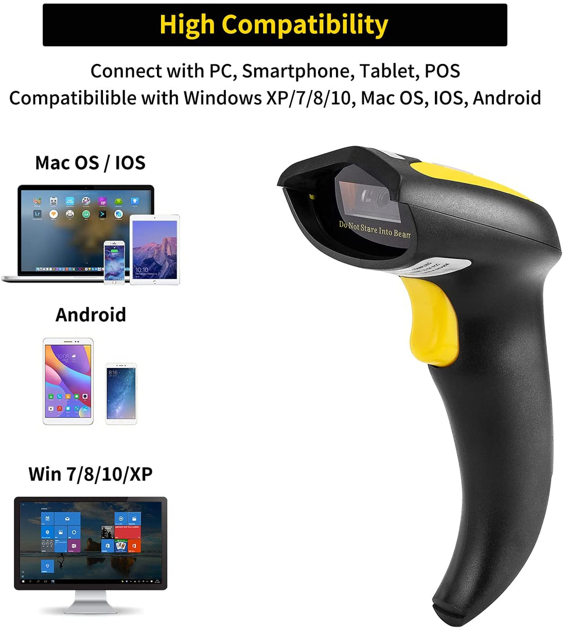 - Professional CMOS Sensor - Fast accurate reading speed, real 32Bit CPU super decoding ability, equiped with professional CMOS sensor, which can faster capture 1D/ 2D(QR/ PDF417/ Data Matrix,etc) bar codes from paper and screen, also with super decoding ability, support read even deformed barcodes, i.e. smudged, damaged, fuzzy, reflective barcodes, etc.