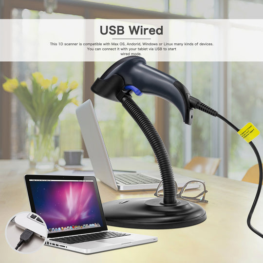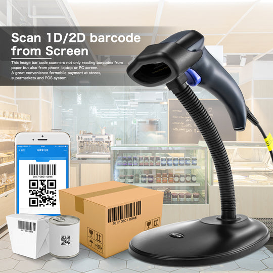 NSW9S Wired QR Barcode Scanner with Stand, Hands Free 1D 2D Bar Code Reader