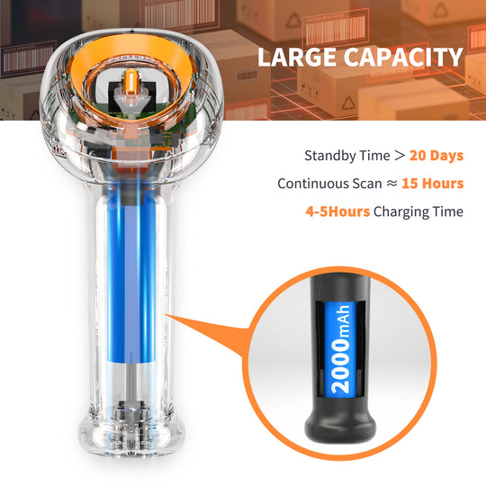 NSK8 Wireless 2D Barcode Scanner, Handheld QR Bar Code Reader Scan PDF417 DataMatrix Maxicode for PC Computer