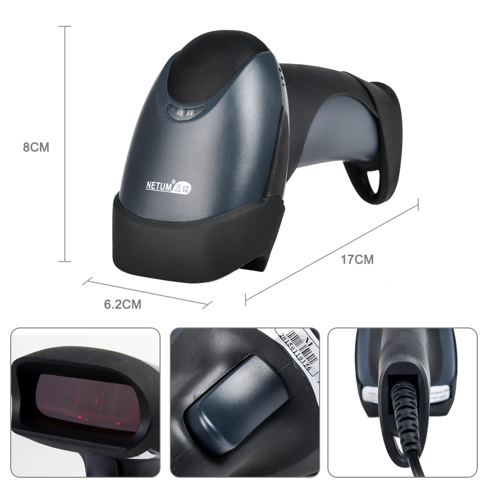 NETUM USB Laser Barcode Scanner, Handheld 1D Wired Bar Code Scanner Scanning UPC EAN Reader Gun Retails for Supermarket, Convenience Store, Warehouse - NT-M1